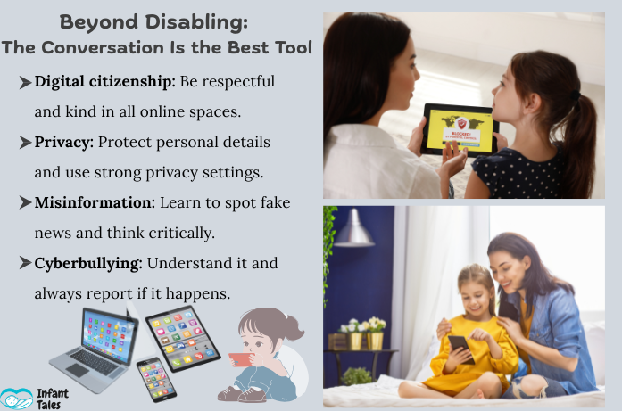 Turning off parental controls is only the first step. What matters most afterward is building trust and guiding your child through digital responsibility. Instead of acting only as a digital gatekeeper, your role gradually shifts into becoming a digital mentor.